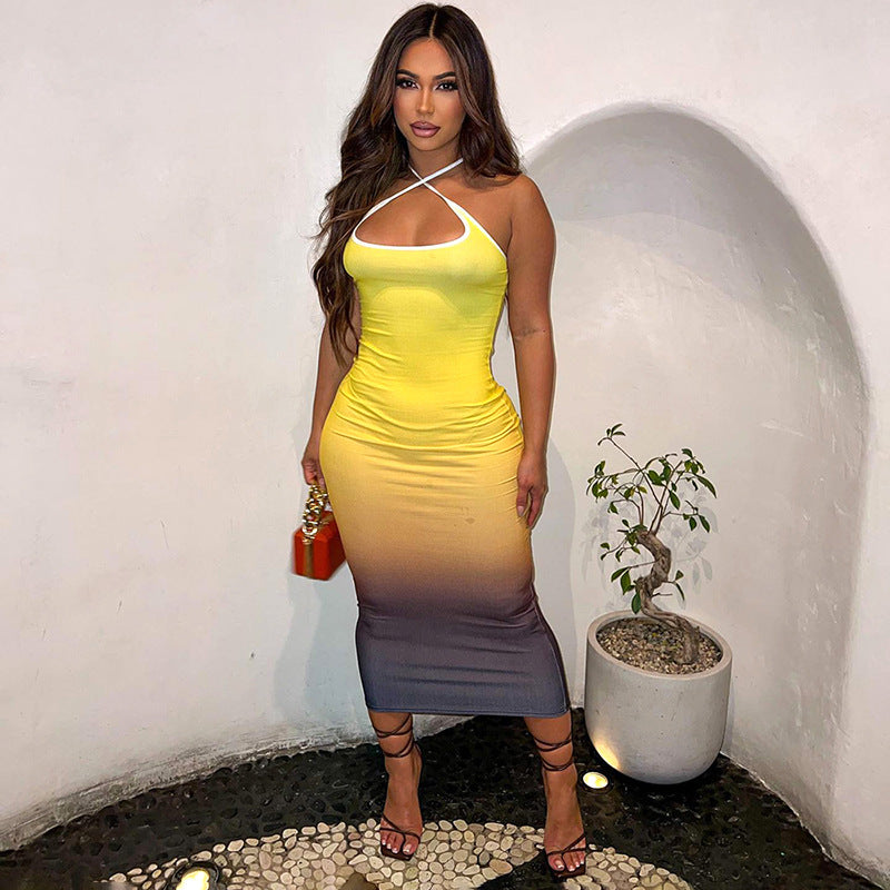 Women's Gradient Printing Backless Slim-fit Dress
