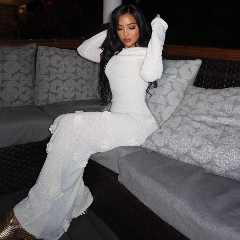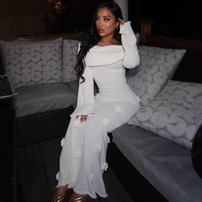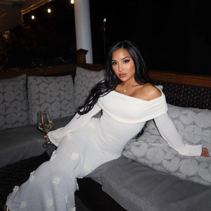 Women's Three-dimensional Flower Dress Off-shoulder Knitted